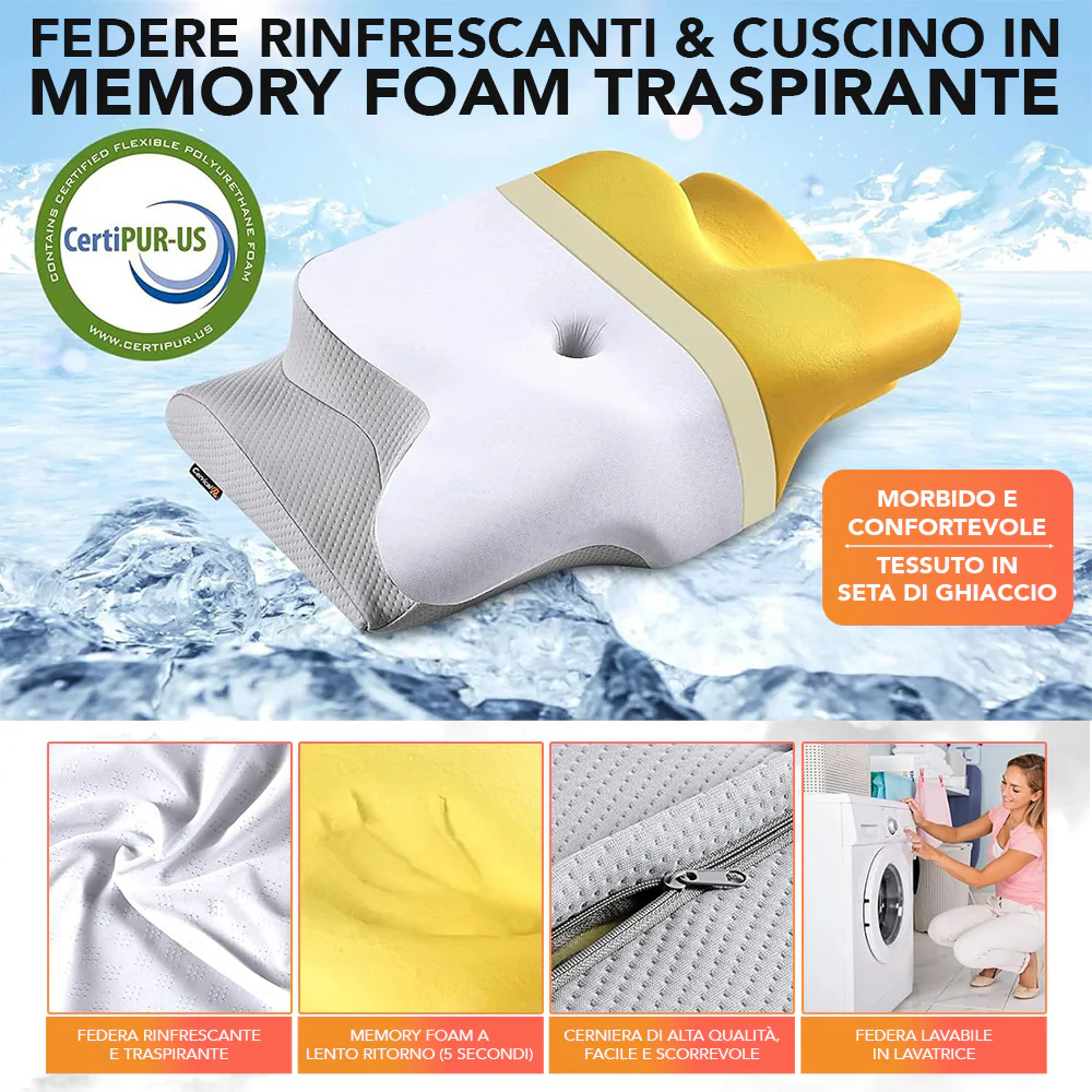 Изработена от мемори пяна, нежно обгръща главата ти и предлага усещане за мекота и свежест като облак.