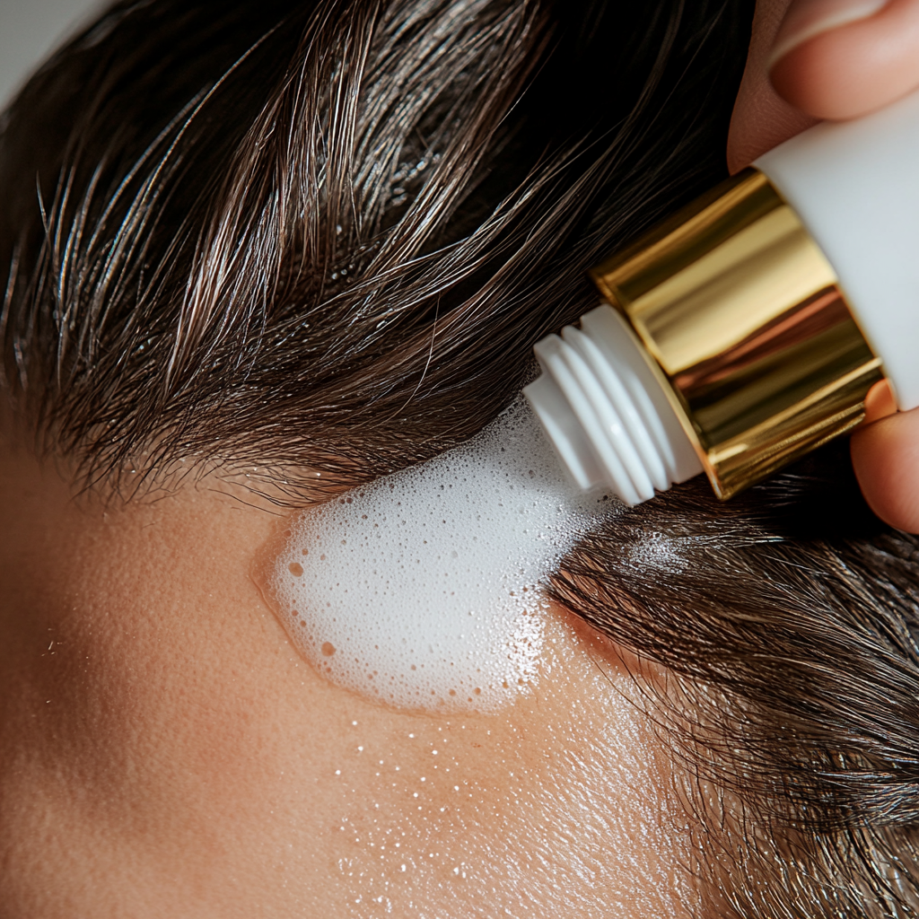 Applicare sulle zone diradate la mousse e massaggiare fino a completo assorbimento.