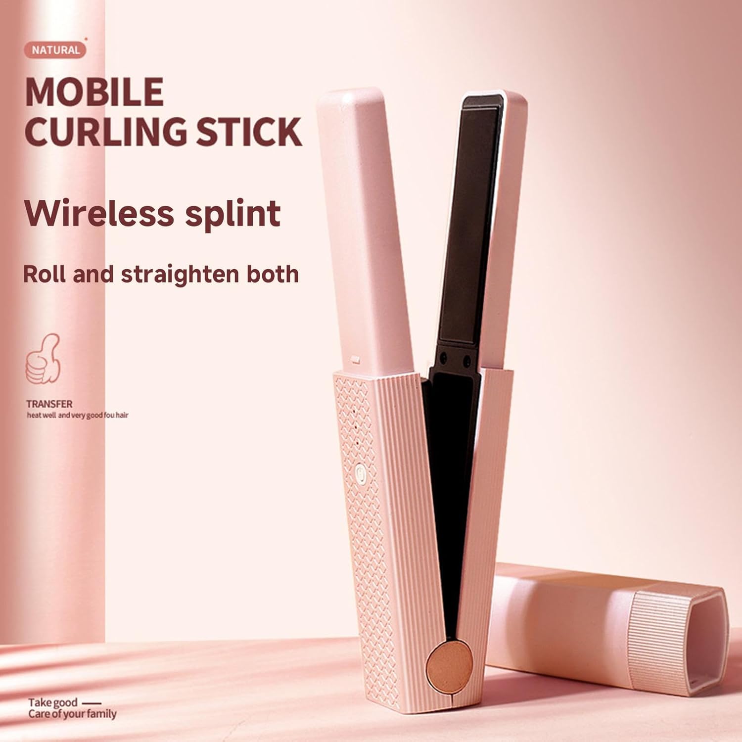 Mini piastra capelli Hairé dal design senza fili, con riscaldamento uniforme e rapido grazie alle piastre in ceramica multifunzionali per uno styling efficiente e delicato.