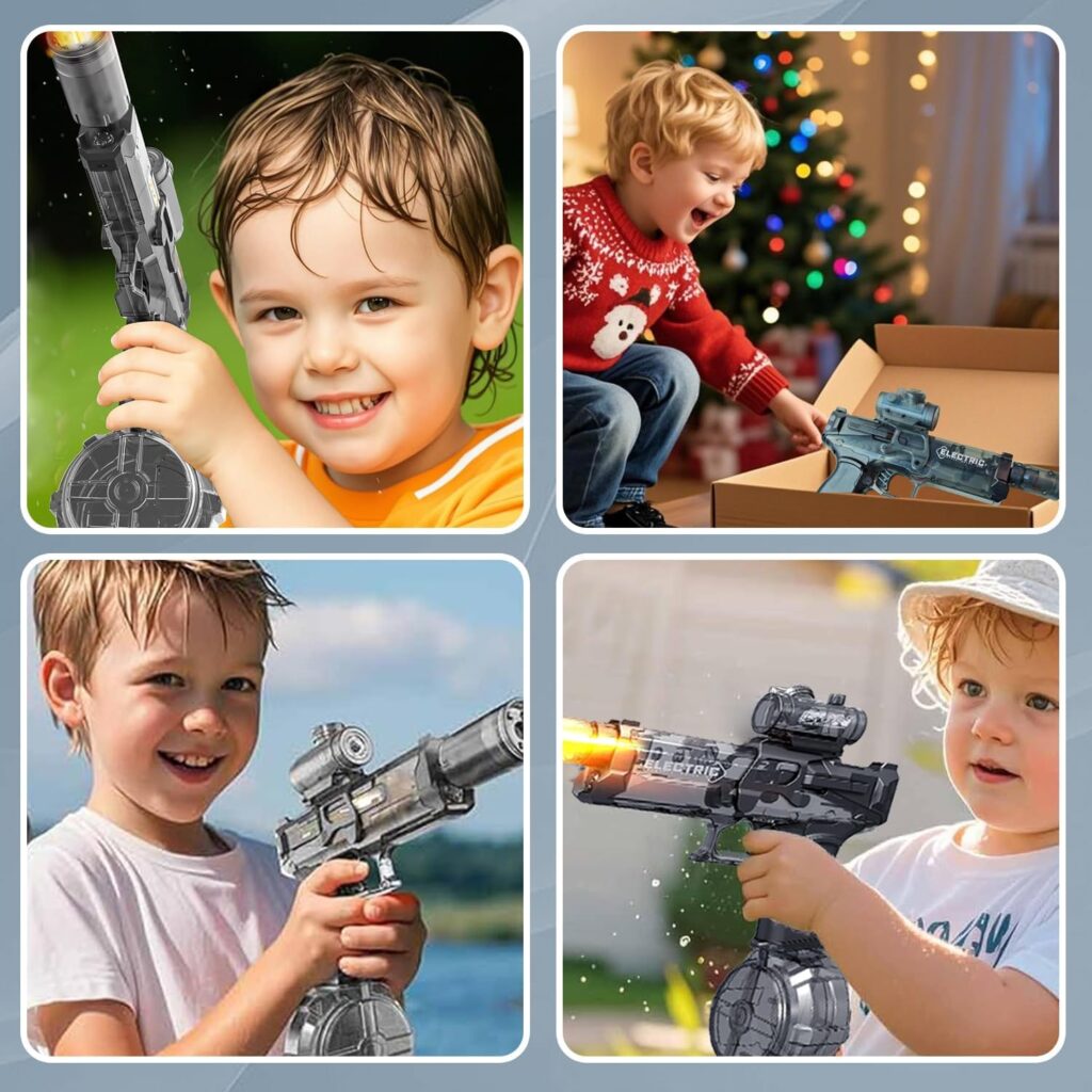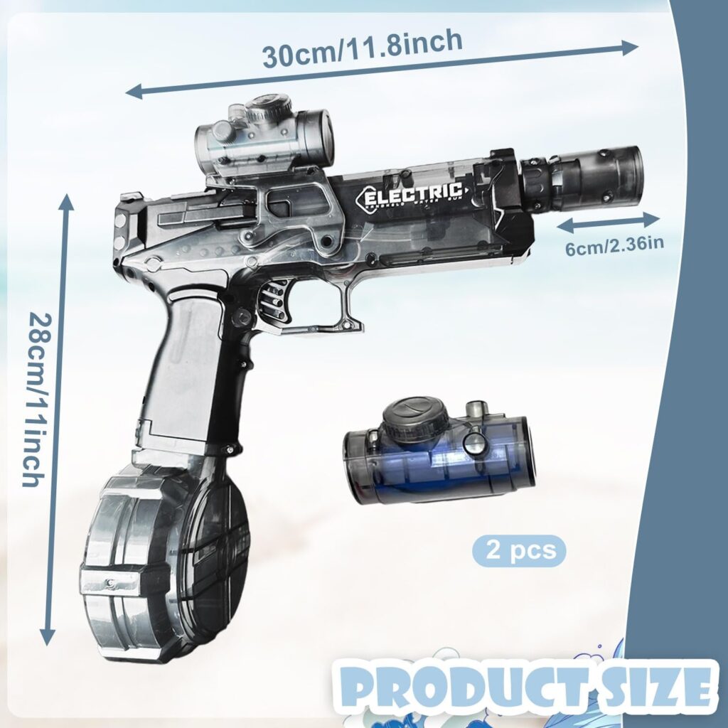 🏖️ Giocattoli Estivi Perfetti: Il giocattolo estivo ideale per piscina, spiaggia e attività all’aperto. Un regalo perfetto per bambini e adulti per rinfrescarsi durante l’estate. (Attenzione: non immergere la pistola in acqua per proteggere i componenti elettronici!)